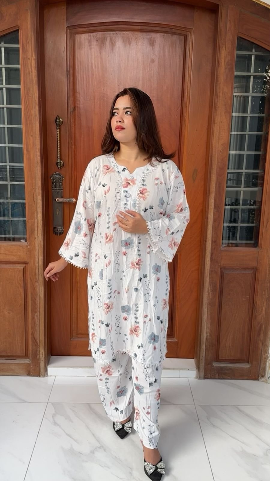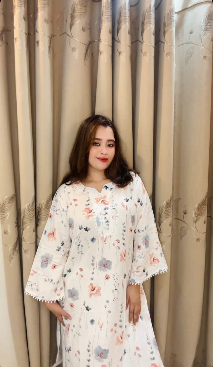 অরিজিনাল সফট চায়না লিলেন লেইস ওয়ার্ক টু-পিস কামিজ সেট